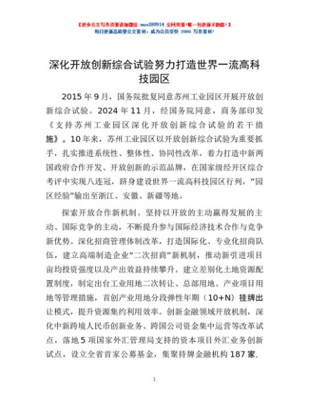 / 深化开放创新综合试验努力打造世界一流高科技园区