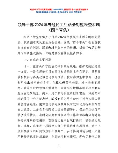 / 领导干部2024年专题民主生活会对照检查材料(四个带头)