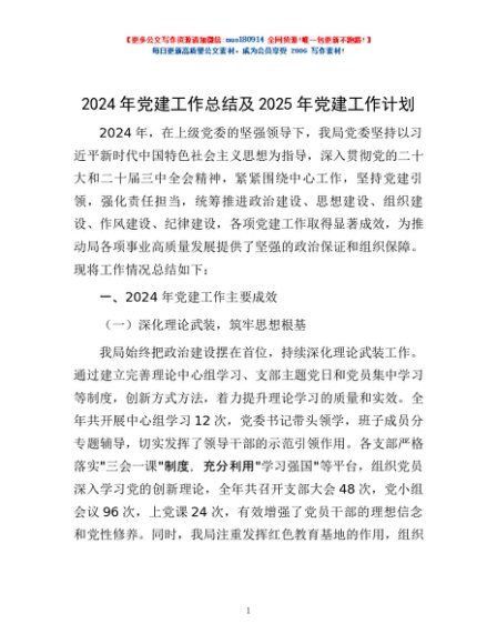 / 2024年党建工作总结及2025年党建工作计划