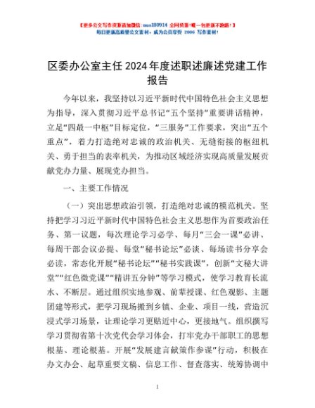 / 区委办公室主任2024年度述职述廉述党建工作报告