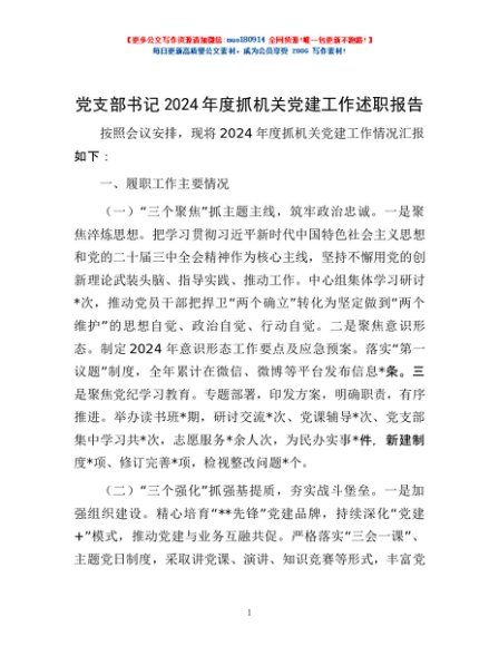 / 党支部书记2024年度抓机关党建工作述职报告