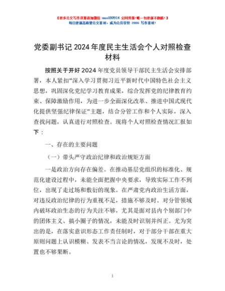 / 党委副书记2024年度民主生活会个人对照检查材料