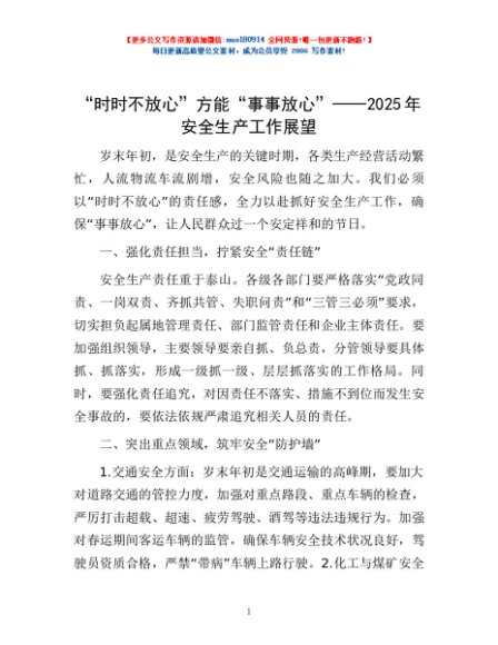 / “时时不放心”方能“事事放心”——2025年安全生产工作展望