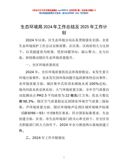 / 生态环境局2024年工作总结及2025年工作计划