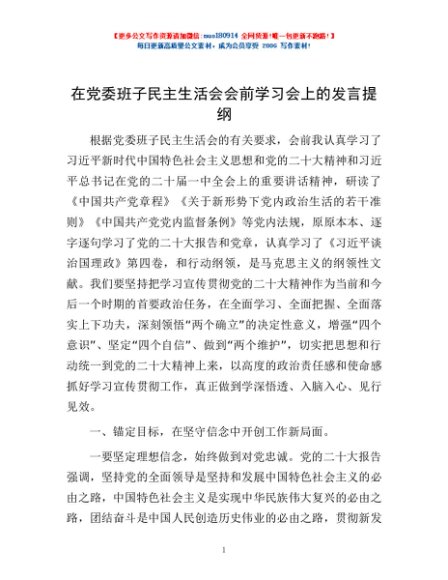 / 在党委班子民主生活会会前学习会上的发言提纲
