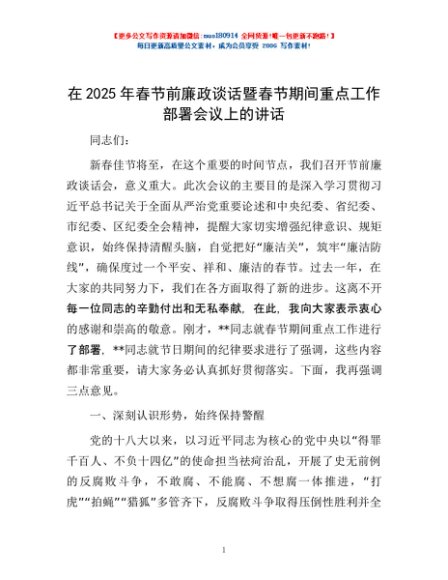 / 在2025年春节前廉政谈话暨春节期间重点工作部署会议上的讲话