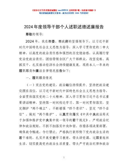 / 2024年度领导干部个人述职述德述廉报告