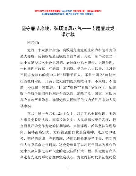/ 坚守廉洁底线,弘扬清风正气——专题廉政党课讲稿