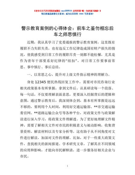 警示教育案例的心得体会:前车之鉴勿相忘后车之师思慎行