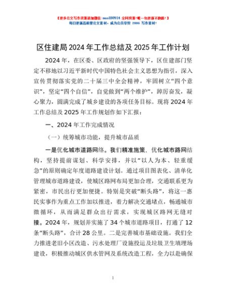 / 区住建局2024年工作总结及2025年工作计划