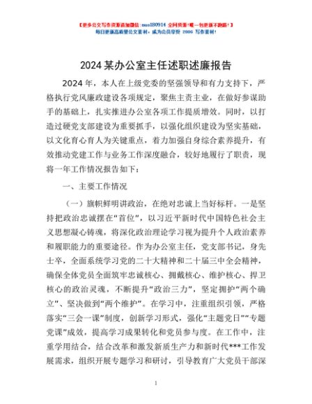 / 2024某办公室主任述职述廉报告