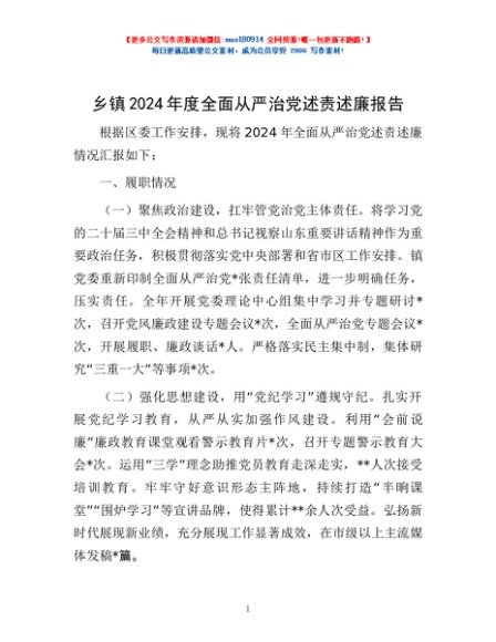 / 乡镇2024年度全面从严治党述责述廉报告