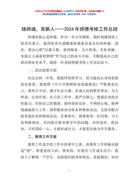 / 铸师魂,育新人——2024年师德考核工作总结