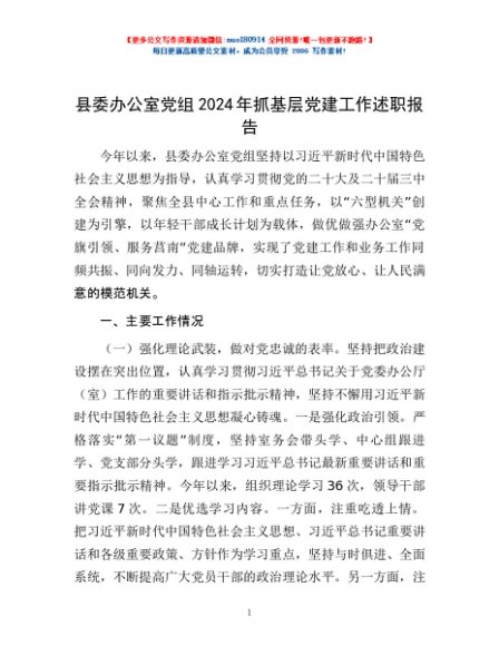 / 县委办公室党组2024年抓基层党建工作述职报告