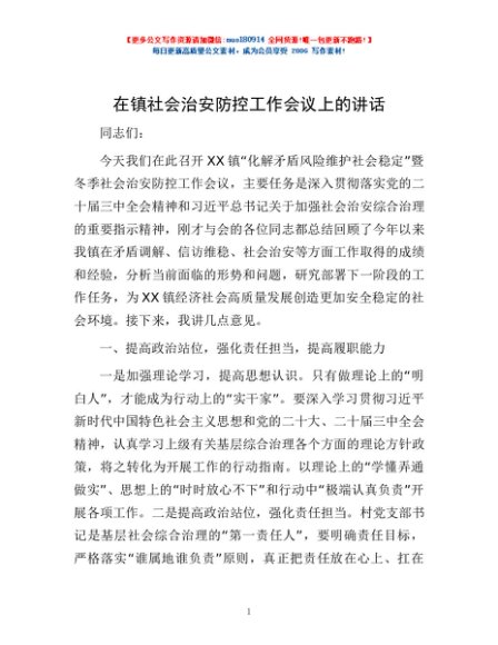 / 在镇社会治安防控工作会议上的讲话