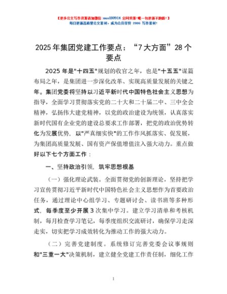 / 2025年集团党建工作要点:“7大方面”28个要点