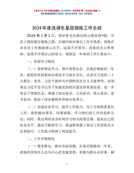 / 2024年度选调生基层锻炼工作总结