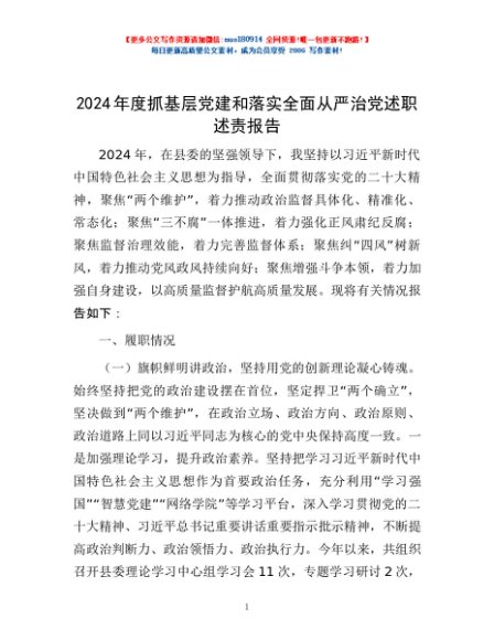 / 2024年度抓基层党建和落实全面从严治党述职述责报告