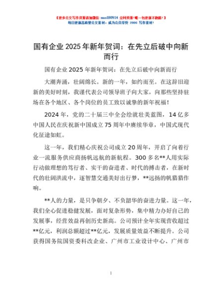 / 国有企业2025年新年贺词:在先立后破中向新而行
