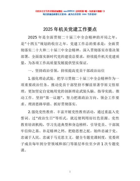 2025年机关党建工作要点