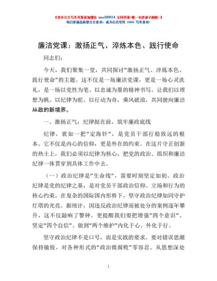 廉洁党课:激扬正气、淬炼本色、践行使命