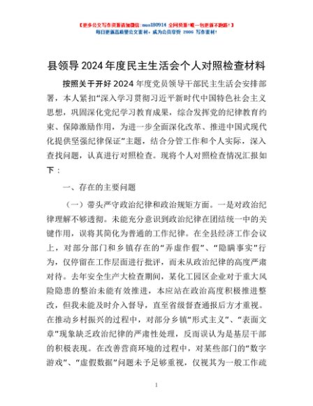/ 县领导2024年度民主生活会个人对照检查材料