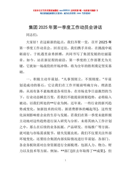 / 集团 2025 年第一季度工作动员会讲话