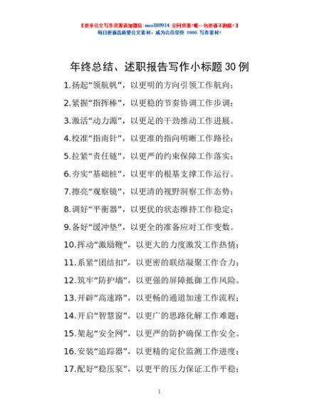 / 年终总结、述职报告写作小标题30例