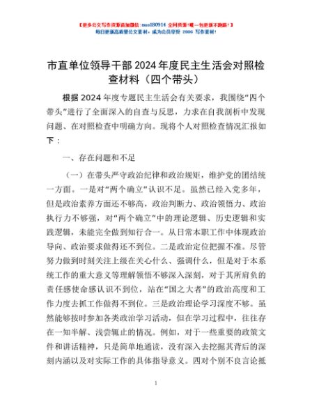 / 市直单位领导干部2024年度民主生活会对照检查材料(四个带头)