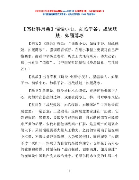 / 【写材料用典】惴惴小心,如临于谷;战战兢兢,如履薄冰