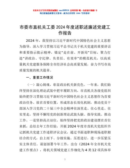 / 市委市直机关工委2024年度述职述廉述党建工作报告