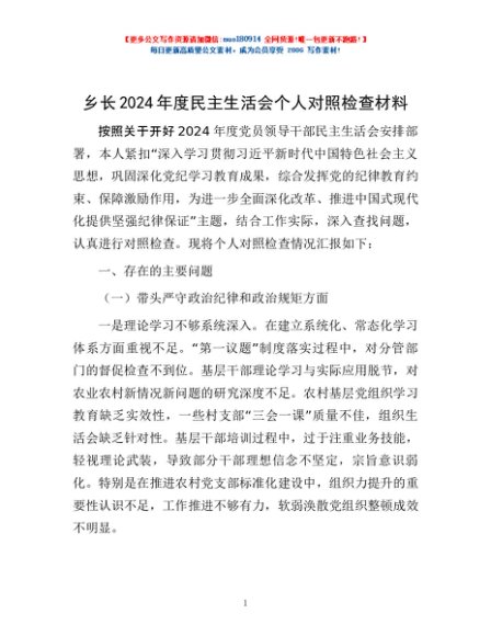 / 乡长2024年度民主生活会个人对照检查材料