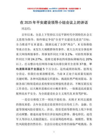 / 在2025年平安建设领导小组会议上的讲话