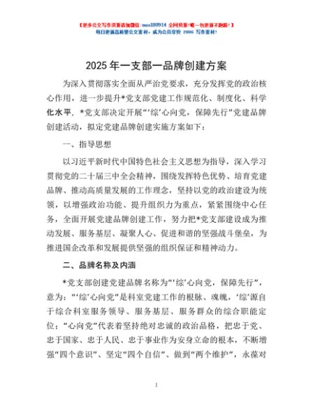 / 2025年一支部一品牌创建方案