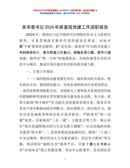 / 某市委书记2024年抓基层党建工作述职报告