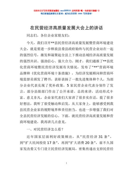 / 在民营经济高质量发展大会上的讲话