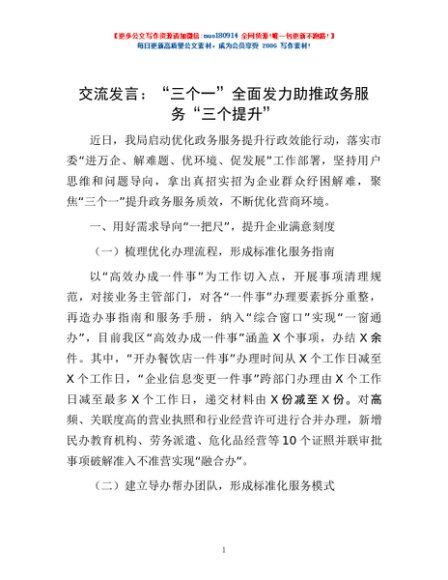 / 交流发言:“三个一”全面发力助推政务服务“三个提升”