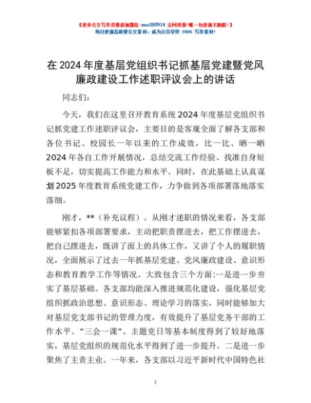 / 在2024年度基层党组织书记抓基层党建暨党风廉政建设工作述职评议会上的讲话