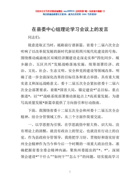 / 在县委中心组理论学习会议上的发言
