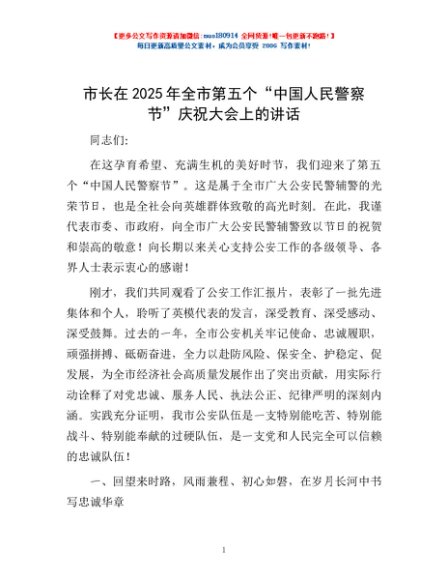 / 市长在2025年全市第五个“中国人民警察节”庆祝大会上的讲话