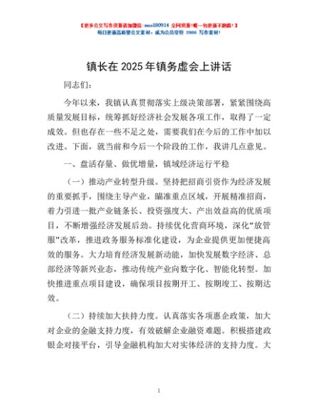 / 镇长在2025年镇务虚会上讲话