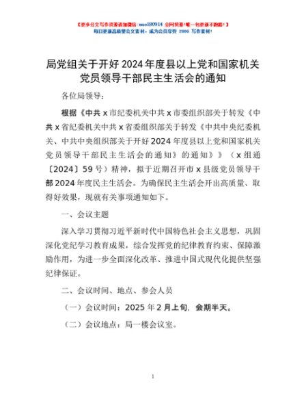 / 局党组关于开好2024年度县以上党和国家机关党员领导干部民主生活会的通知