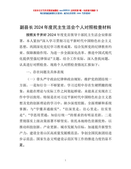/ 副县长2024年度民主生活会个人对照检查材料