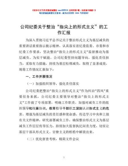/ 公司纪委关于整治“指尖上的形式主义”的工作汇报