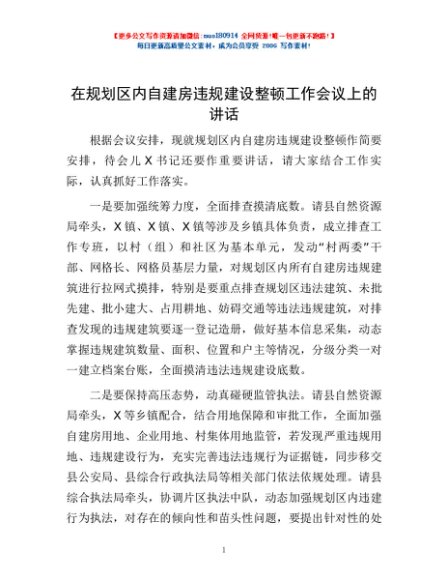 / 在规划区内自建房违规建设整顿工作会议上的讲话