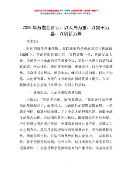 2025年务虚会讲话:以大局为重、以实干为基、以创新为翼