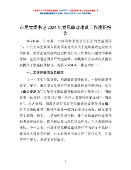 / 市局党委书记2024年党风廉政建设工作述职报告