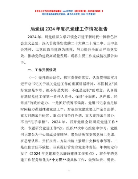 / 局党组2024年度抓党建工作情况报告