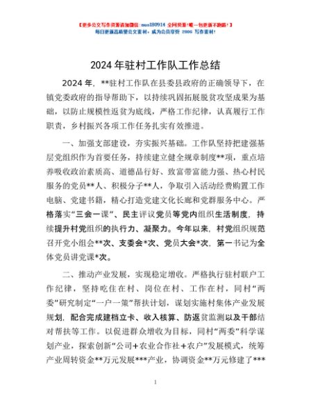 / 2024年驻村工作队工作总结