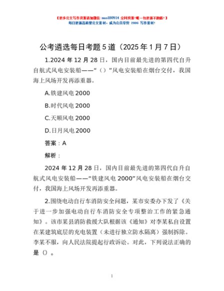 / 公考遴选每日考题5道(2025年1月7日)